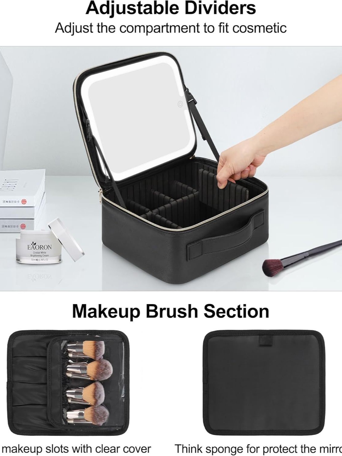 Inside, you’ll find six removable EVA dividers that allow you to tailor the interior layout to fit your unique collection of cosmetics, brushes, and tools. Each divider is lined with a drip-proof sponge pad, providing added protection against spills, cracks, and leaks—ensuring your beauty essentials stay pristine.