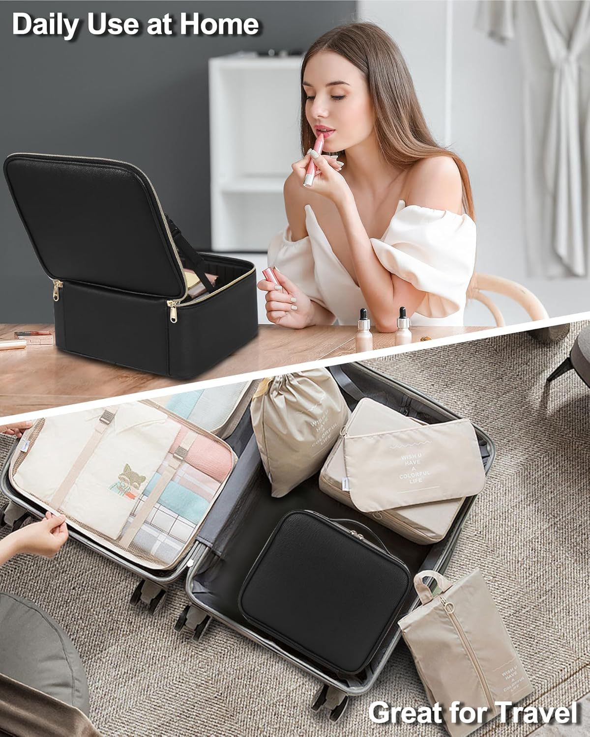 More than just a makeup organizer, this case is a multi-functional storage solution for jewelry, tech accessories, essential oils, grooming tools, and more. Its compact yet spacious design makes it an ideal companion for travel, work, or daily use. A thoughtful and practical gift for beauty enthusiasts, professionals, and jet-setters alike.
